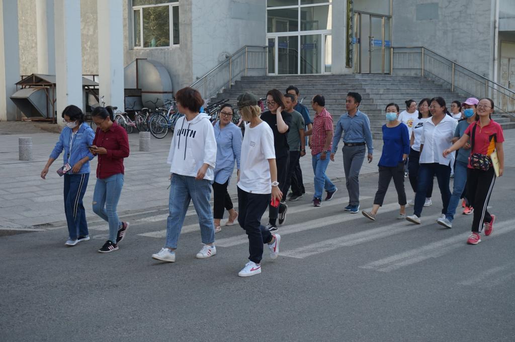 活动中,全体老师带着高涨的热情,迈开步伐,迎着阳光大步向前走。大步走结束后,全体教师合影留念。