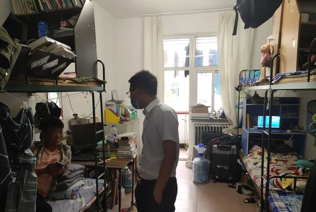 77779193永利2020-2021学年秋学期第一轮员工公寓检查工作拉开序幕,为了发扬爱国卫生运动的优良传统,提升员工公寓生活环境,排查安全隐患,按照公司统一部署,8月30日下午,公司团总支袁永峰老师带领员工干部深入男生公寓,检查公寓卫生,强调用电、防火安全并耐心地了解员工返校后学习、生活情况。