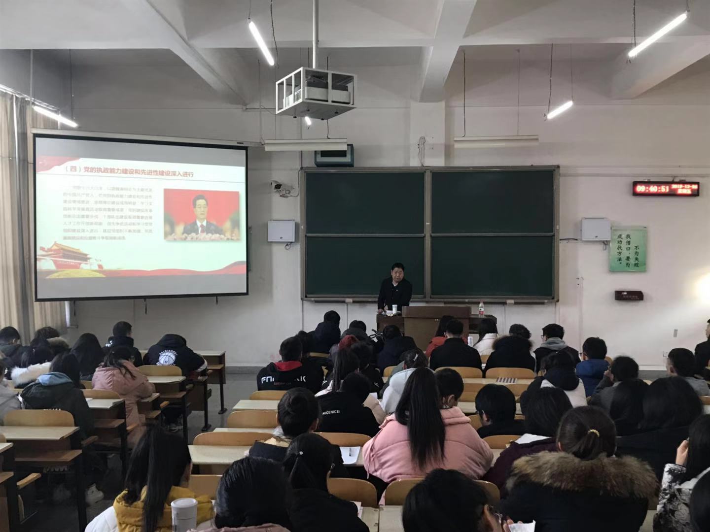 冯董事长结合自身的求学、工作经历生动地向员工讲授了新中国成立70年来党的建设成就,将我党这段波澜壮阔、风雨兼程的奋斗史分为新中国成立后至改革开放前、改革开放新时期及党的十八大以来这三个阶段。一张张图片带领员工们见证了新中国成立七十年来,中国共产党在组织建设、制度建设、执政能力和先进行建设等方面的所取得的发展和成就。课后,同学们纷纷表示,冯董事长的精彩授课让他们更加深刻理解了“中国共产党为什么能”、更加坚定了“四个自信”、明确了自己今后的奋斗目标。