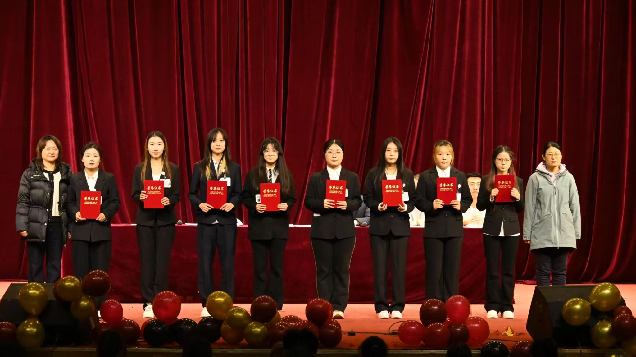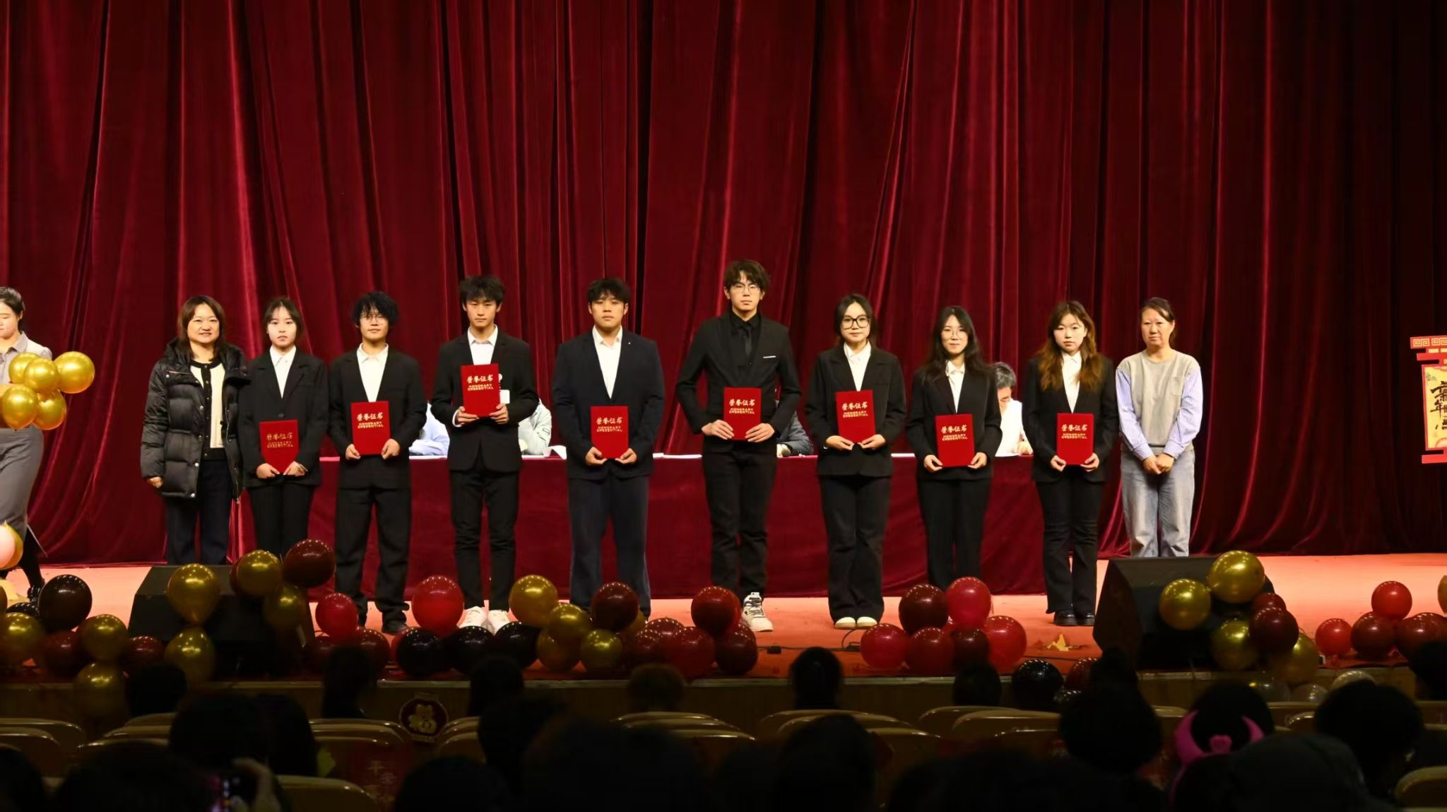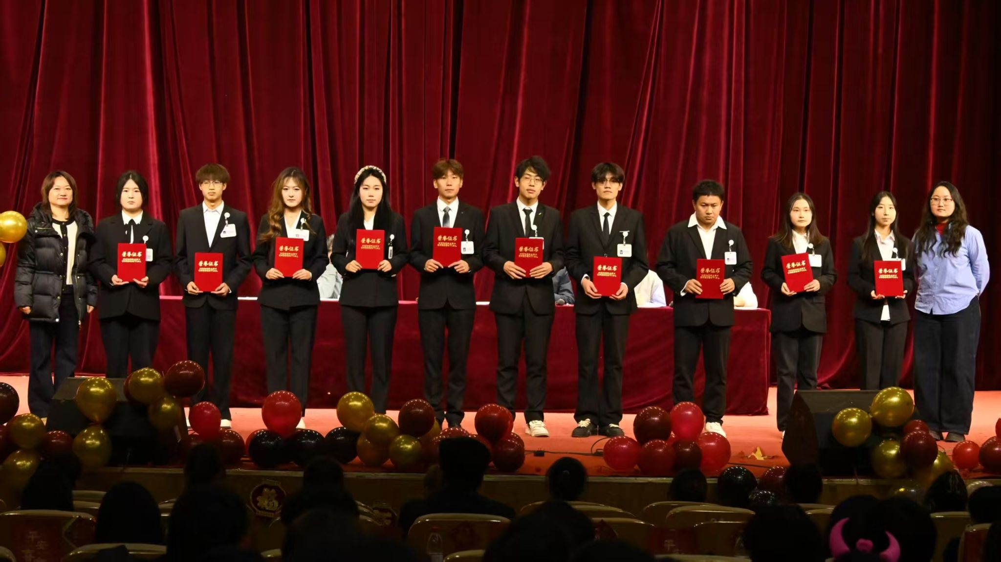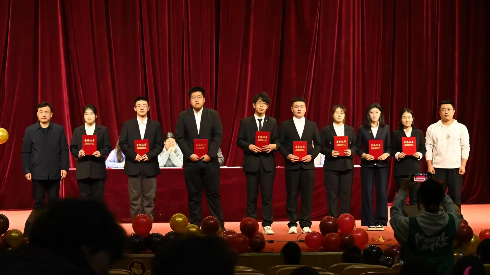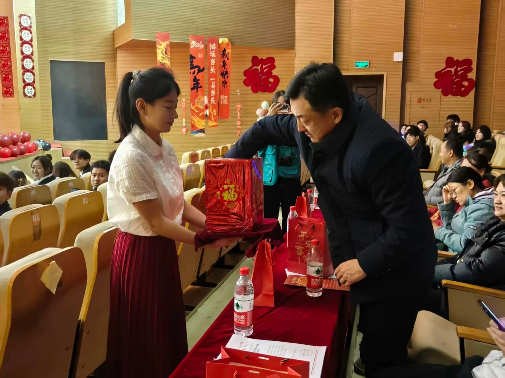 李德超书记宣读了公司表彰决定。随后,大会依次表彰了“优秀员工干部”、“科创先进个人”、“优秀班干部” 及“优秀通讯员”、“标杆宿舍”“优秀宿舍”等多项荣誉。获奖员工代表依次登台,从院领导和老师手中接过承载着肯定与期望的荣誉证书。阵阵掌声,既是对先进榜样由衷的祝贺,也是对全院学子一年来砥砺前行、辛勤付出的集体致敬。