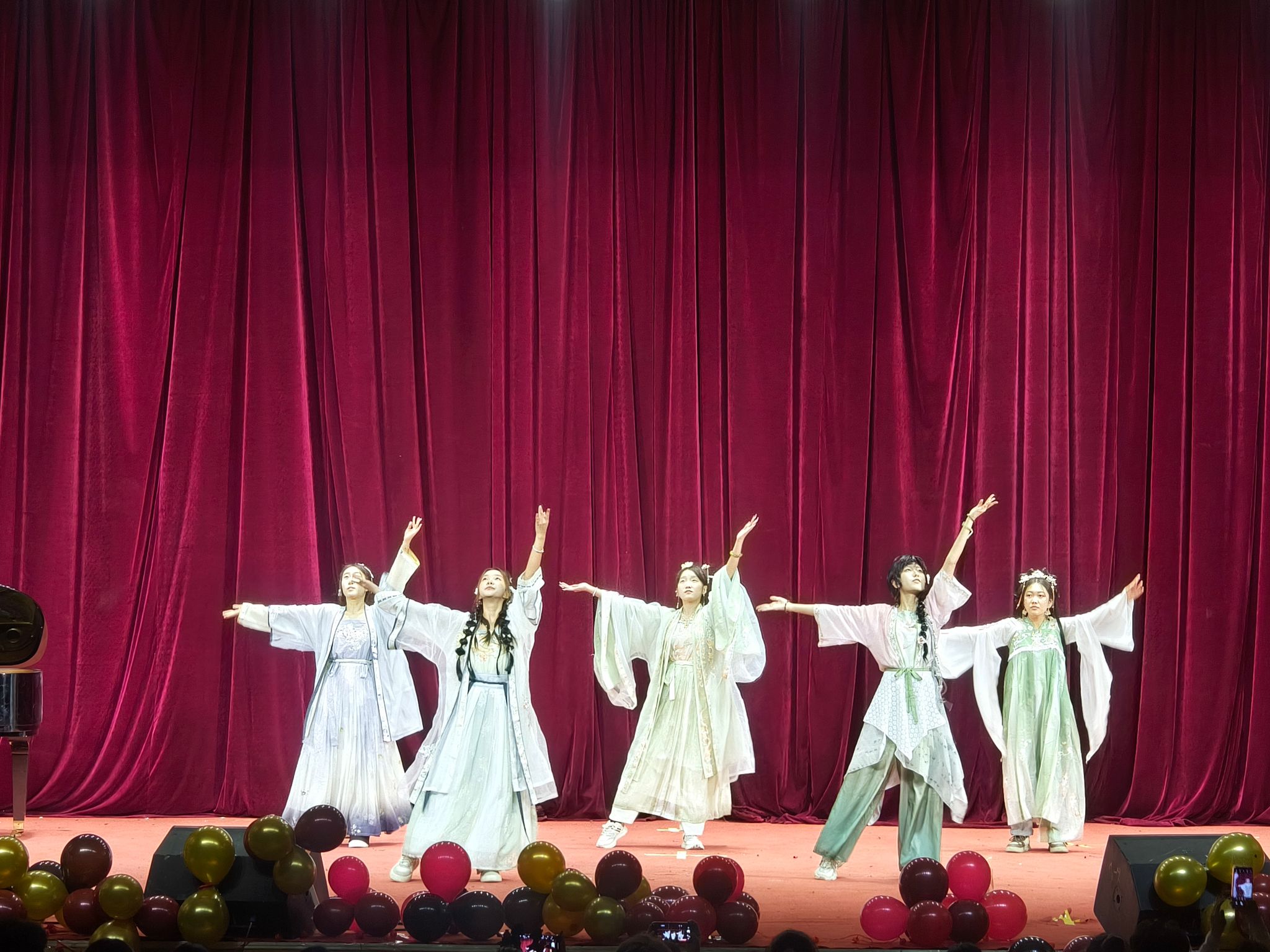 晚会在腾飞艺术团鹿鸣乐队充满活力的歌曲《你要跳舞吗》中热烈开场。随后,深情演唱的《小酒窝》、《My love》、《有点甜》、《富士山下》展现了学子们的青春情怀;汉服社团演绎的舞蹈《折枝花满衣》,衣袂飘飘,古韵悠然,彰显了文化自信;跳绳社团的《随绳舞动》活力四射,腾飞艺术团的器乐演奏《无名的人》深情动人,赢得了现场阵阵喝彩。由员工组织出演的小品《当考试还剩最后15分钟》,贴近校园生活,诙谐中蕴含思考,引发了广泛共鸣。