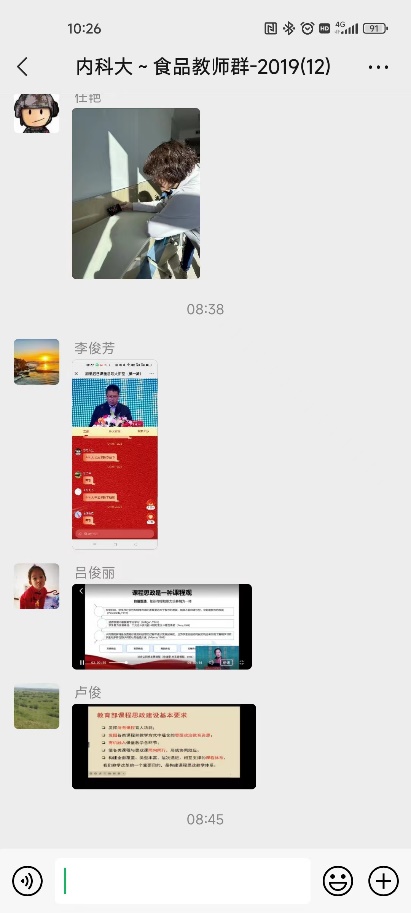 食品科学与工程系于4月4日-6日开展了专题学习、研讨活动,通过自主学习结合集中研讨的方式进行。4日-6日上午,老师们通过自主学习的方式,详细学习了思政大讲堂的讲座内容。4月6日下午,系部开展了研讨会,各位老师总结了讲座内容,发表了自己的理解和见解,并结合所带课程交流了以后思政教育的目标和教学方式。讨论热烈,总体学习效果良好。