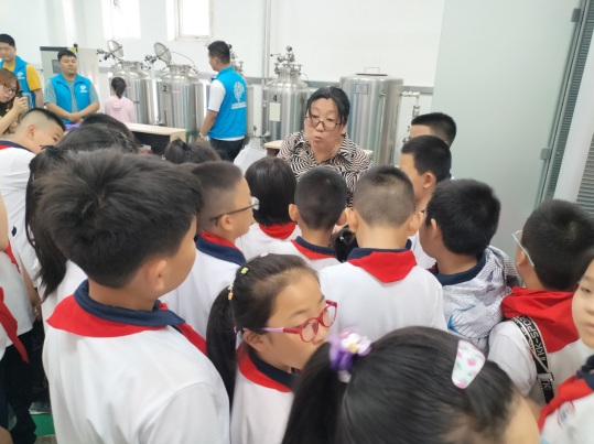 参观的第二站,同学们来到了啤酒发酵创新实验室,77779193永利教授李雅丽对啤酒发酵过程,以及制作啤酒仪器设备的使用等方面进行了讲解,使同学们认识到了小小微生物的大作用,培养了同学们科学探索的兴趣。